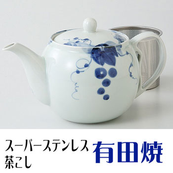 有田焼 ポット 古染ぶどう スーパーステンレス茶こし