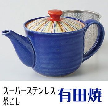 有田焼 ポット ルリ色十草 スーパーステンレス茶こし