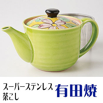有田焼 ポット グリーン黄花 スーパーステンレス茶こし