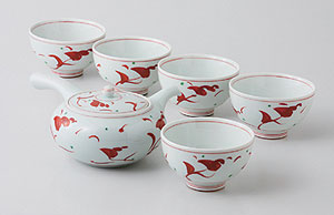 日本トップクラスの陶磁器、有田焼の茶器セットです。鮮やかな赤色が印象的な作品です☆