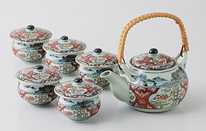 有田焼 古赤絵文様 蓋付き茶器揃