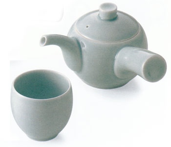 白山陶器 丸小急須 (青白釉)(湯呑付き)