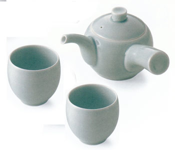 白山陶器 丸小急須 (青白釉)(湯呑2個付き)