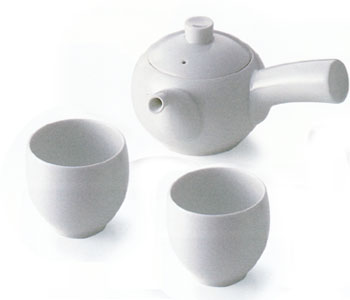白山陶器 丸小急須 (白磁)(湯呑2個付き)