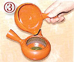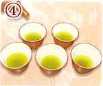 (お茶の種類によって適温・適量があります。下記の目安表を参考にしてください。)茶葉は急須に入れておきます。