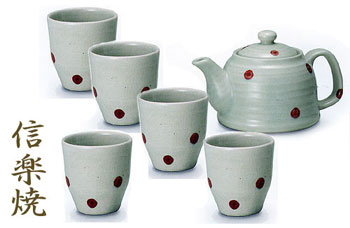 信楽焼 ポット 赤点々 湯呑み5客セット