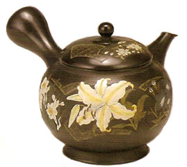 常滑焼 急須 黒泥四季の花(20号)