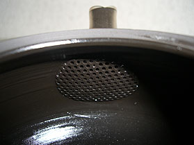 茶こしの目が細かい陶製の茶こしです。金属の