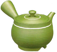 急須と言えば常滑焼。柏龍陶苑の作品です。緑の急須に白いラインで急須全体が引き締まって見えます♪
