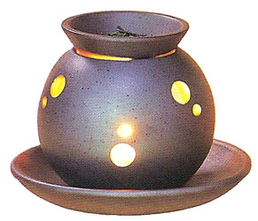*香炉の茶受け皿部分に日本茶の葉を適量入れてください。(小スプーン2〜3杯分) *付属の自然にやさしい洋ローソクを香炉の底におき、火をつけてください。 *約10分ほどで日本茶の香りが漂いはじめます。 *茶葉は時々攪拌(かくはん)してください。(焦げる場合があります。) *付属の洋ローソク1本で約3〜5時間ご使用いただけます。