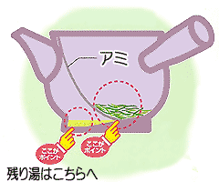 残り湯に茶葉がそのまま浸っているとお茶の大切なうまみ成分が抜けてしまいます。そんなトラブルを解消するのがこの急須! 急須の中のアミと底の高低差で茶葉と残り湯を分けることによって、茶葉が浸り続けず2杯目以降も格段においしいお茶がいただけます